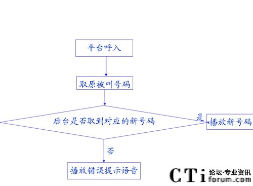 當(dāng)客戶申請了改號通知業(yè)務(wù)后,客戶將需要改號的手機設(shè)置呼叫轉(zhuǎn)移,將呼叫轉(zhuǎn)移到改號通知系統(tǒng)的接入號碼上,當(dāng)用戶撥打此客戶的舊號碼時,系統(tǒng)取出該客戶的舊號碼所對應(yīng)的新號碼,以語音方式播報給主叫方,從而完成改號通知服務(wù)。例如:當(dāng)某用戶(手機、固定電話)撥打已做變更用戶的手機號碼時會得到類似如下語音提示:您好!您所撥打的手機號碼已改為XXX,請撥打新號碼。該語音可任意設(shè)置,還可以將該提示以短信形式下發(fā)到手機撥打用戶,且主叫方用戶不會產(chǎn)生任何費用。