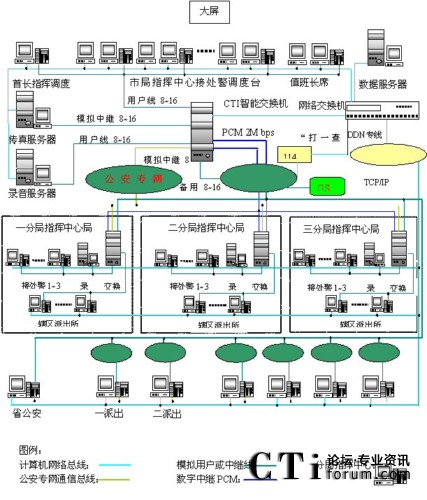 指揮中心對下屬各派出所、消防大隊、交警大隊的指揮調(diào)度分有線、無線等多種途徑,呼叫方式可以是單呼、組呼、群呼、會議(含多方通話)等多種方式。發(fā)布指令和信息可通過計算機網(wǎng)絡(luò)發(fā)送到對方的遠(yuǎn)程計算機終端或打印機上,也可以通過有線傳真系統(tǒng)發(fā)送到對方的傳真機或計算機上。
