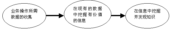 知識(shí)管理是在應(yīng)用操作的基礎(chǔ)上發(fā)展起來(lái)的,它經(jīng)歷了數(shù)據(jù)收集、信息挖掘和知識(shí)發(fā)現(xiàn)的三個(gè)歷程,如下圖所示。