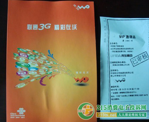 會場到處都洋溢“中國聯(lián)通”的氣息。如現(xiàn)場有眾多中國聯(lián)通的3G宣傳廣告,且發(fā)的材料中還有一份是中國聯(lián)通的宣傳單,另外,會議現(xiàn)場甚至還有聯(lián)通3G手機(jī)銷售柜臺。種種情況讓齊先生等人更堅定了他們參加的就是中國聯(lián)通組織的會議。