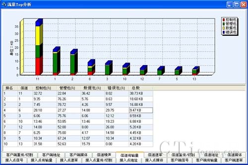 問題發(fā)現(xiàn):通過實(shí)時流量的統(tǒng)計(jì)分析,我們發(fā)現(xiàn)在信道6,AP數(shù)量10個,目前某AP接入終端數(shù)為16,對某些終端的服務(wù)質(zhì)量急劇降低,導(dǎo)致錯誤包過大。