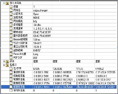 該系統(tǒng)能夠向用戶提供豐富的802.11 a/b/g/n無線參數(shù),包括信號強(qiáng)度覆蓋參數(shù),同頻干擾及鄰頻干擾參數(shù),管理幀、控制幀、數(shù)據(jù)幀及各種無線幀傳輸速率的統(tǒng)計(jì)參數(shù)等;系統(tǒng)能基于以上各類統(tǒng)計(jì)參數(shù),并通過實(shí)時進(jìn)行各種數(shù)據(jù)業(yè)務(wù)測試,獲取網(wǎng)絡(luò)的數(shù)據(jù)業(yè)務(wù)參數(shù)指標(biāo),分析WLAN網(wǎng)絡(luò)質(zhì)量問題。