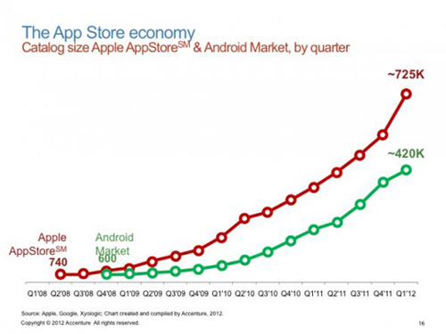 蘋(píng)果iOS與Google的Android在APP數(shù)量上的增長(zhǎng)對(duì)比