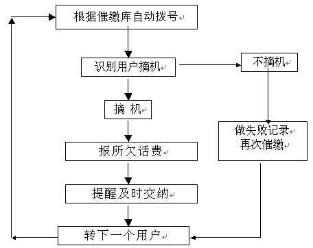 。。使用本系統(tǒng)后的催繳方式:計(jì)算機(jī)到了合適催繳的時(shí)間,會(huì)自動(dòng)撥打手機(jī)或聯(lián)系電話進(jìn)行話費(fèi)催繳,如:“尊敬的用戶您好,我是移動(dòng)客戶服務(wù)中心,首先提醒您的是本次通話為免費(fèi)通話,F(xiàn)在您的手機(jī)已經(jīng)欠費(fèi),欠費(fèi)金額為158.6元,請(qǐng)您速到各移動(dòng)營業(yè)廳和銀行網(wǎng)點(diǎn)交費(fèi),以免影響您的正常使用,謝謝!”,這里有幾個(gè)問題需要重視:
