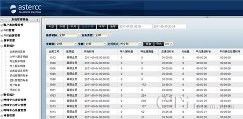 asterCC的CATI問卷系統(tǒng)擁有海量報(bào)表數(shù)據(jù),供您對(duì)業(yè)務(wù)進(jìn)行分析、統(tǒng)計(jì),對(duì)坐席的工作情況了如指掌。