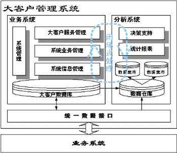 HollyAnalyzer是建立在大客戶信息平臺基礎(chǔ)上的針對業(yè)務(wù)主題、面向決策支持的系統(tǒng)。將數(shù)據(jù)倉庫的相關(guān)技術(shù)引入,利用數(shù)據(jù)分析系統(tǒng),從基于客戶數(shù)據(jù)及企業(yè)業(yè)務(wù)活動的歷史記錄中提煉出有用的信息產(chǎn)生標(biāo)準(zhǔn)的查詢報告,進(jìn)行大客戶分析和市場營銷的輔助決策支持。分析主題主要針對客戶、競爭對手和營業(yè)及收入進(jìn)行分析,這些數(shù)據(jù)是企業(yè)非常關(guān)心的信息,有助于企業(yè)借助積累的歷史數(shù)據(jù),對其業(yè)務(wù)運(yùn)營狀況及營銷活動成效做出正確的評價,了解客戶行為及其趨向。