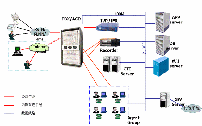 在建立呼叫中心前,廣州自來水公司只有覆蓋公司和各供水管理所的供水熱線系統(tǒng),該系統(tǒng)只有簡單的接入電話,沒有完善的呼叫中心功能,話務量承受能力小,接通率低,沒有統(tǒng)一的服務窗口和后臺,統(tǒng)計功能也只能靠手工實現(xiàn)。為了更好的為廣大市民服務,廣州市自來水公司決定取消原先供水熱線工作模式,由公司成立客戶服務中心集中管理,建立基于互聯(lián)網(wǎng)的呼叫中心,負責全市范圍內客戶服務,使客戶能夠通過各種資訊工具如電話、傳真、電子郵件、短信等方式從自來水公司獲取用水信息,并能實現(xiàn)業(yè)務申請、投訴、業(yè)務受理、業(yè)務咨詢、業(yè)務查詢等,采用回撥技術實現(xiàn)客戶回復、客戶回訪、客戶調查等業(yè)務。
