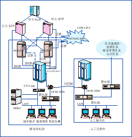 人工座席臺完成人工受理功能,與智能交換機通過1B+1D話務員座席電路的連接方式、采用遠端模塊方案進行連接,人工秘書臺網(wǎng)絡業(yè)務與短消息調度中心通信的連接采用華為公司數(shù)據(jù)接入設備DCM2000建立起2*64K數(shù)據(jù)通路;