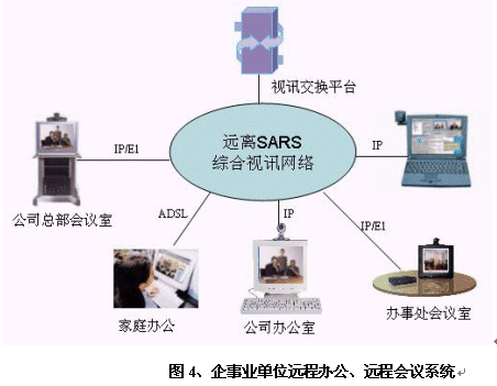 非典型肺炎不但對(duì)國(guó)家的經(jīng)濟(jì)造成了重大的損失,而且使得全社會(huì)對(duì)"非典"噤若寒蟬,大家對(duì)出差甚至外出都異常緊張。華為公司提供為個(gè)人家庭辦公、探親訪友的遠(yuǎn)程多媒體通信解決方案,大家在家里即可通過(guò)網(wǎng)絡(luò)和親朋好友"面對(duì)面"交流、在家中辦公。減少外出、遠(yuǎn)離人員眾多地區(qū),有效預(yù)防非典。對(duì)于有條件的用戶群可以推薦在現(xiàn)有寬帶線路或新增寬帶線路上購(gòu)買(mǎi)軟件,即可實(shí)現(xiàn)親朋好友間的個(gè)人視頻通信;對(duì)于暫不具備寬帶條件的群體,如學(xué)生等,可以考慮在重點(diǎn)營(yíng)業(yè)廳設(shè)立專門(mén)會(huì)議室或者視訊公話亭等,提供預(yù)約視頻服務(wù),滿足其溝通的需求。