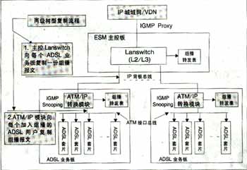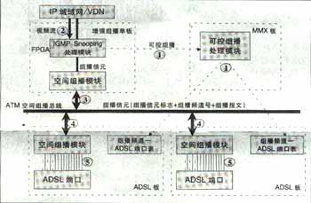 可實現(xiàn)高效的兩級組播;诳臻g總線上的組播信元技術(shù)實現(xiàn),與組播用戶數(shù)無關(guān),同一節(jié)目即使所有用戶加入該頻道,僅需復(fù)制一份,不用逐個用戶復(fù)制到每個用戶端口,極大節(jié)省了背板帶寬,減輕IP上行負(fù)擔(dān)?蓪崿F(xiàn)高性能硬件組播轉(zhuǎn)發(fā)。IP上行板采用超大規(guī)模FPGA硬件邏輯處理組播報文,ADSL板采用空間組播處理硬件芯片自動完成向每個ADSL端口(用戶)的組播復(fù)制,每ADSL端口組播帶寬6M。