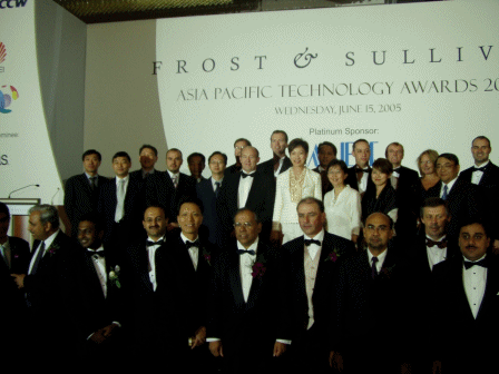 新加坡CommunicAsia2005展會期間,2005年6月15日晚—新加坡香格里拉飯店燈火輝煌,全球通信行業(yè)的精英公司濟(jì)濟(jì)一堂,共同見證了亞太地區(qū)一年一度的Frost & Sullivan亞太區(qū)技術(shù)大獎的頒獎禮的盛況。晚會期間共產(chǎn)生了6項(xiàng)運(yùn)營商獎項(xiàng)和11項(xiàng)供應(yīng)商獎項(xiàng)。