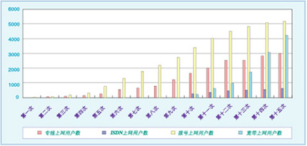 圖一:歷年調(diào)查上網(wǎng)人數(shù)表(第十五次中國互聯(lián)網(wǎng)發(fā)展況狀分析報告)