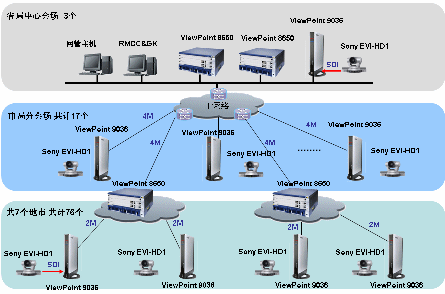 省到17個地市的二級網(wǎng)采用: ViewPoint 8650 高清MCU 2臺,用于媒體交換和信令交互。Viewpoint 8650是業(yè)界首款全面支持高清視頻圖像、提供高保真音質(zhì)的新一代全高清綜合媒體交換平臺。ViewPoint 9036 720P高清終端20臺,該終端提供2.5倍的DVD圖像清晰度和高保真音質(zhì);青島局(獨立的,不歸省局統(tǒng)一管理)準二級網(wǎng),采用:ViewPoint 8650 高清MCU2臺,ViewPoint 9036 720P高清終端19臺;日照、威海、泰安、濱州、菏澤、濟寧采用:ViewPoint 8650 高清MCU 6臺,ViewPoint 9036 720P高清終端57臺;省中心和青島局采用兩臺華為ViewPoint 8650作為核心雙機備份,全面保證了整個視訊會議系統(tǒng)的穩(wěn)定性,提供7*24小時的穩(wěn)定運行。其他6個地市采用單臺ViewPoint 8650 MCU進行管理。在系統(tǒng)安全性管理方面,采用H.235信令加密、媒體流采用AES加密及雙流加密、采用Vxwork嵌入式操作系統(tǒng),保證系統(tǒng)不受病毒入侵。