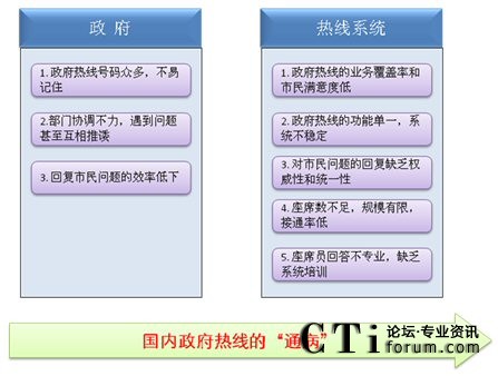 深圳市原有政府熱線所反映的問題并非孤立,由于時(shí)代和技術(shù)的局限性,國內(nèi)其它的一些政府熱線也同樣面臨著諸多問題,具體如下: