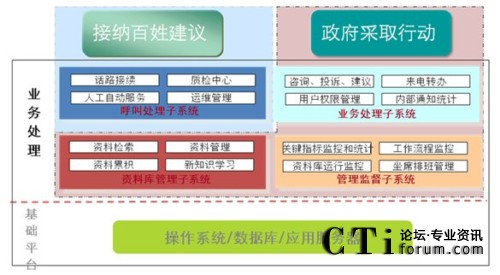 在架構(gòu)設(shè)計(jì)上,從電話接入、辦件流程、資料庫管理、信息維護(hù)到報(bào)表統(tǒng)計(jì)都實(shí)現(xiàn)了一體化設(shè)計(jì)理念。以業(yè)務(wù)流程設(shè)計(jì)為例,針對市民來電中的咨詢類的問題,12345政府熱線將直接由前臺接聽人員利用各部門預(yù)先錄入資料庫中的規(guī)范答案來回答市民的提問;對市民反映、建議、投訴類的來電,則由前臺記錄后轉(zhuǎn)給市信訪辦的后臺工作人員處理。一整套開放性的工作流和穩(wěn)定的技術(shù)后臺支持確保了市民可以在規(guī)定的時(shí)間內(nèi)得到政府的權(quán)威處理與回復(fù)。