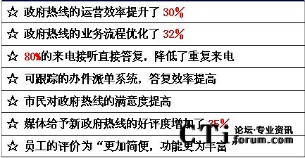 在我們的采訪中,深圳市政府認(rèn)為,建設(shè)法治政府、廉潔政府、效率政府、有限政府、陽光政府和責(zé)任政府,前提是政府必須完成轉(zhuǎn)型。政府行政體制改革的最終目標(biāo)是要達(dá)到行政權(quán)力規(guī)范,服務(wù)型的一個(gè)政府。因而,為市民提供專業(yè)權(quán)威和有效的政府熱線服務(wù)成為題中之意。通過深圳市12345政府熱線的成功應(yīng)用,我們可以體會到呼叫中心應(yīng)用于政府及公用事業(yè)部門后,受益的不僅是千百萬公眾,更重要的是加速了在社會急劇變革時(shí)代政府職能的現(xiàn)代化轉(zhuǎn)型。