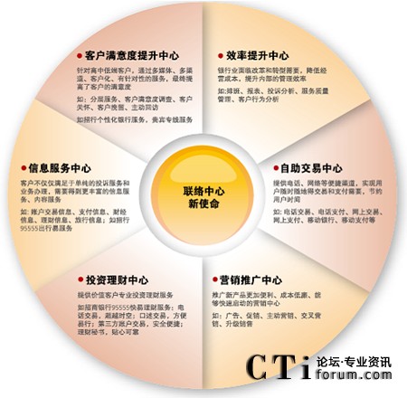 對于銀行業(yè)來說,聯(lián)絡中心已經(jīng)成為為客戶提供優(yōu)質、快捷的金融理財服務的第二窗口。隨著電子化建設的不斷深入,寬帶、Internet和3G時代帶來的IP融合,聯(lián)絡中心為金融服務帶來了更廣泛的創(chuàng)新,未來的銀行聯(lián)絡中心將為客戶提供的金融服務趨于無所不能。銀行聯(lián)絡中心已經(jīng)成為自助交易中心、投資理財中心、營銷推廣中心和信息服務中心,借助聯(lián)絡中心,銀行與客戶可以隨時隨地建立緊密的多媒體互動,提升客戶滿意度和服務效率。
