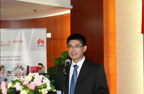 圖:華為軟件UC產(chǎn)品總監(jiān)許國華做“攜手邁入全業(yè)務(wù)融合時代,助力企業(yè)騰飛”的主題演講