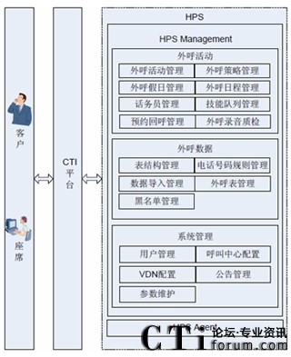 Server)提取HPS Management中導入的客戶數(shù)據(jù),自動批量的執(zhí)行外呼任務?蛻艉敉ê螅炄際PS Agent 的話務員為客戶提供語音服務。