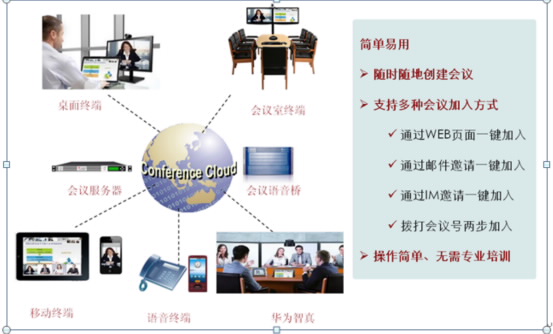 華為提供了經過專門設計和測試的融合解決方案,將智真、硬件、軟件、電話等任何會議形式融合在一起實現在辦公室、會議室、家中、戶外等任何位置,使用臺式機、筆記本、智能手機、平板電腦、固定電話等任何設備將員工、合作伙伴和客戶緊密的聯系在一起,實現實時的交流協作。