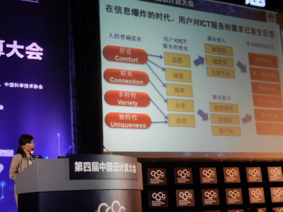 圖片說(shuō)明:華為IT產(chǎn)品線副總裁朱近之女士在中國(guó)云計(jì)算大會(huì)做主題演講