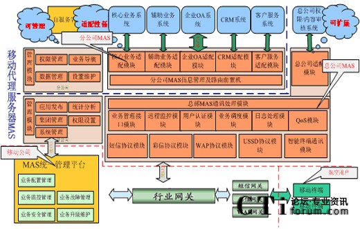 移動電子政務(wù)和移動電子商務(wù)的應(yīng)用需求在快速增長,中國移動為適應(yīng)行業(yè)集團客戶對信息化移動應(yīng)用不斷增長的需求,推出 MAS(移動代理服務(wù)器 Mobile Agent Server)系統(tǒng),解決行業(yè)用戶基于移動終端的信息化應(yīng)用服務(wù);