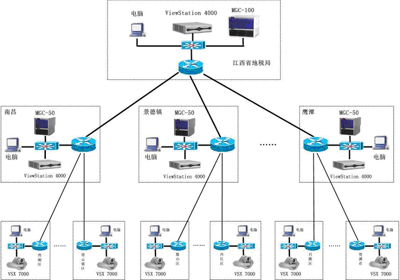 江西省地方稅務(wù)局是主管地方稅收的省人民政府直屬機(jī)構(gòu)。內(nèi)設(shè)辦公室、政策法規(guī)處、人事處、流轉(zhuǎn)稅管理處,等10個(gè)職能處(室)。全系統(tǒng)共有機(jī)構(gòu)1193個(gè),其中省局1個(gè),設(shè)區(qū)市局11個(gè),縣(市、區(qū))級(jí)地稅局(分局)115個(gè),基層分局(所)625個(gè),事業(yè)單位333個(gè),直屬單位108個(gè)。長期以來省局與下屬各部門之間聯(lián)系不便,每年都需要頻繁召開省局與下屬分局的大小會(huì)議來進(jìn)行工作部署、交流以及統(tǒng)一的學(xué)習(xí)、培訓(xùn)等等,不僅消耗了大量的時(shí)間,也耗費(fèi)了很多的人力和物力。因此急需建立起一個(gè)完善的、功能強(qiáng)大的視頻會(huì)議系統(tǒng)。該系統(tǒng)建成后,應(yīng)實(shí)現(xiàn)以省局為中心連通下屬各個(gè)市、分局,以市、分局為中心,向下聯(lián)通各自所轄基層分局,實(shí)現(xiàn)全省稅務(wù)機(jī)關(guān)的遠(yuǎn)程電視會(huì)議、遠(yuǎn)程培訓(xùn)、視頻檔案等功能。