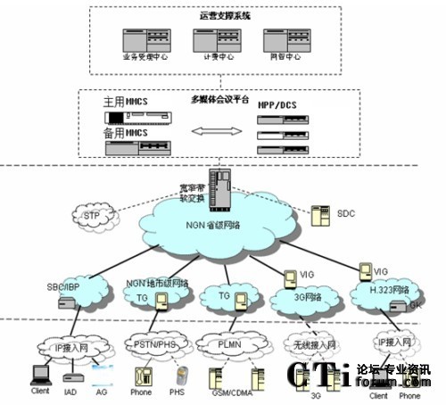 艾諾MMC多媒體會議系統(tǒng)可以和NGN和IMS網(wǎng)絡無縫對接,作為NGN和IMS系統(tǒng)的一個多媒體增值業(yè)務。另外艾諾MMC多媒體會議系統(tǒng)提供豐富的運營對接接口,包括網(wǎng)管、計費、業(yè)務受理、短信等。艾諾MMC作為NGN多媒體業(yè)務的組網(wǎng)圖如下所示: