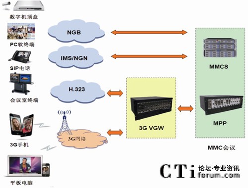 - 多協(xié)議混合接入:系統(tǒng)支持SIP和H.323雙協(xié)議棧,支持兩種類型的終端同時(shí)混合接入多媒體會(huì)議;可以將原有的專網(wǎng)視頻會(huì)議系統(tǒng)擴(kuò)展至3G手機(jī)。