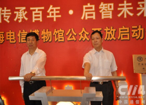 圖:中國電信上海公司黨委副書記陳鴻生(左)與上海市通信管理局正巡視員李振坤共同啟動(dòng)上海電信博物館公眾開放