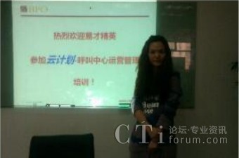 2012年3月16日作為“云計(jì)劃”第一期培訓(xùn)班在北京正式啟動(dòng),獲得了就職于各呼叫中心項(xiàng)目的易才博普奧一線坐席員工的廣泛關(guān)注和踴躍的報(bào)名。經(jīng)過“云計(jì)劃”入門培訓(xùn)資格的嚴(yán)格篩選,最終共有來自藝龍、樂淘、用友等項(xiàng)目的9名優(yōu)秀員工正式入圍,成為第一期“云計(jì)劃”成員。在今后的一段時(shí)間里同易才博普奧資深培訓(xùn)師一起學(xué)習(xí)一些列的專業(yè)課程,豐富自身在呼叫中心行業(yè)的專業(yè)知識(shí),并走上易才博普奧構(gòu)建的職業(yè)晉升通道!
