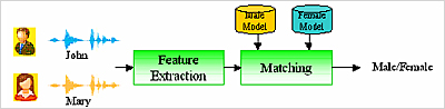 性別辨識(shí)(Gender Recognition)技術(shù)是以語(yǔ)音訊號(hào)處理的方法,擷取說(shuō)話者的聲音特征,藉此判斷說(shuō)話者的性別是男性或女性,如下流程圖所示的技術(shù)。