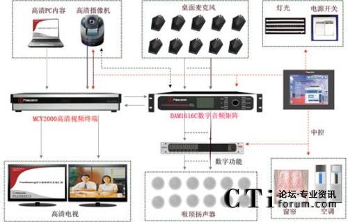 - 視頻終端和數(shù)字音頻矩陣通過控制接口和中控連接