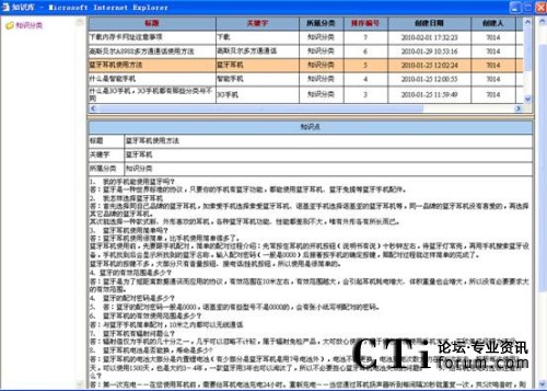 知識(shí)庫(kù)可以由企業(yè)相關(guān)人員自行設(shè)定、更新最新的產(chǎn)品知識(shí)、市場(chǎng)信息和競(jìng)爭(zhēng)產(chǎn)品比較等信息。強(qiáng)大的搜索功能也使得查詢更加便利。如當(dāng)客戶提出某問(wèn)題使得服務(wù)人員無(wú)法立即回答時(shí),系統(tǒng)還提供相應(yīng)的填寫(xiě)欄目以便及時(shí)發(fā)送至主管,請(qǐng)求幫助。而當(dāng)主管對(duì)此問(wèn)題進(jìn)行回復(fù)后,可以選擇將此問(wèn)題自動(dòng)放入知識(shí)庫(kù),以便同其他人員分享。系統(tǒng)可以根據(jù)問(wèn)題的點(diǎn)擊率將最感興趣的問(wèn)題排列在最前,并可以匯總出一定時(shí)間內(nèi)最感興趣的問(wèn)題及產(chǎn)品,作為企業(yè)對(duì)服務(wù)人員今后培訓(xùn)的重點(diǎn)。同時(shí),系統(tǒng)將自動(dòng)記錄每一位客戶的咨詢記錄,及時(shí)更新并在客戶再次致電時(shí),顯示在客戶資料當(dāng)中。