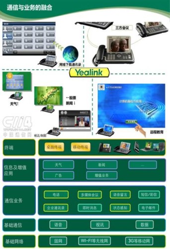 億聯(lián)專注于VoIP領(lǐng)域的發(fā)展,見(jiàn)證了整個(gè)終端發(fā)展過(guò)程:從由傳統(tǒng)的模擬/數(shù)字電話、IP語(yǔ)音電話、IP視頻話機(jī),到多媒體信息終端階段。每前進(jìn)一步,都擁有上一步的所有功能,并再延伸出更核心的應(yīng)用。