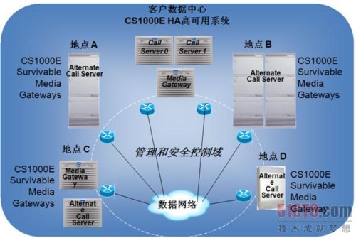 據(jù)51CTO記者了解,CS1000有兩種版本,分別是CS1000E和CS1000M。其區(qū)別在于每臺(tái)服務(wù)器支持的客戶數(shù)量上會(huì)略有不同,而1000E更加適合全I(xiàn)P環(huán)境的部署。在其宣傳資料上,記者注意到兩個(gè)比較有意思的概念“區(qū)域冗余”和“地理冗余”,據(jù)北電企業(yè)網(wǎng)解決方案及市場(chǎng)高級(jí)經(jīng)理孫志方介紹,這兩個(gè)概念實(shí)際上與大家所熟悉的“線路冗余”和“設(shè)備冗余”有一些區(qū)別,傳統(tǒng)線路和設(shè)備的冗余都是在相對(duì)較小的數(shù)據(jù)中心內(nèi)實(shí)現(xiàn)的,而北電的區(qū)域和地理冗余價(jià)值在于當(dāng)呼叫服務(wù)器發(fā)生故障時(shí),其他冗余呼叫服務(wù)器會(huì)自動(dòng)接管,并且能夠使用戶保持連接的狀態(tài),在51CTO記者看來(lái),這意味著即使故障發(fā)生,只要互聯(lián)網(wǎng)還在,就不影響用戶正常通信,這對(duì)于IT經(jīng)理們來(lái)說(shuō),無(wú)疑很具誘惑力。