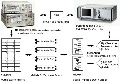 PXI控制器并搭載了Pentium III處理器。使用者可以自眾多PXI訊號(hào)產(chǎn)生模塊選擇所需,或搭配外接式儀器透過(guò)PXI-GPIB控制卡聯(lián)機(jī)。被測(cè)物(DUT)產(chǎn)生的特性參數(shù)、傳遞函數(shù)或時(shí)域信號(hào),可采用PXI-2000、TE-6100等高性能數(shù)據(jù)擷取卡進(jìn)行采樣。而后藉由ADLINK