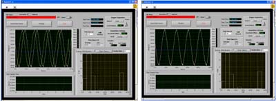 當(dāng)兩個(gè)(或多個(gè))設(shè)備一起工作并對時(shí)間有精確要求的時(shí)候,就需要在它們之間進(jìn)行同步。同步是基于在兩個(gè)設(shè)備之間規(guī)定一個(gè)共同的時(shí)間參考,試想如果將不同音軌的音頻訊號分別錄在不同的磁帶機(jī)上,則必須將這兩個(gè)磁帶機(jī)的磁帶傳送軸鎖定在一起,否則將來撥放出來就會有相位上的誤差,這個(gè)過程就稱為同步。假使這兩個(gè)設(shè)備沒有進(jìn)行同步,無論它們開始的時(shí)間多么一致,也會由于兩臺設(shè)備在機(jī)械結(jié)構(gòu)的差異而產(chǎn)生時(shí)間漂移。同樣的,對于數(shù)據(jù)采集卡也是一樣的概念,甚至在要求上更為嚴(yán)格。而如何達(dá)到數(shù)據(jù)同步采集,最基本的要求就是不同模塊間要有相同的工作時(shí)脈與一致的觸發(fā)信號,而這個(gè)相同的時(shí)脈信號需來自于共同的外部儀器。下圖中的弦波是兩張數(shù)據(jù)采集卡在同步與異步采集同一信號源所得的波形,在左圖中因異步而存在一向位差,右圖中則是同步觸發(fā)下得到完全重迭的波形。