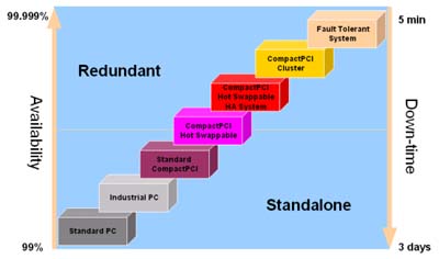 雖然CompactPCI的價(jià)格較VME和傳統(tǒng)工業(yè)計(jì)算機(jī)為高,但就整體考量而言,效價(jià)比仍是相當(dāng)優(yōu)異的。就幾乎無法接受系統(tǒng)損壞停機(jī)的電信產(chǎn)業(yè)而言,通訊設(shè)備供貨商(TEM)如何規(guī)劃一個(gè)價(jià)格合理、性能穩(wěn)定的高可用性系統(tǒng)呢?