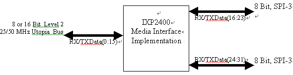下圖是使用Intel IPX2400的范例,說明規(guī)劃時可能要處理的一些接口。請注意,許多網(wǎng)絡處理器允許接口被設定成可支持多種不同的傳輸,以下只是其中一種可能的設定范例。