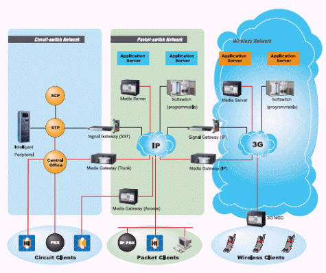 、隨選視訊(Video Streaming) 等應(yīng)用,著重在聲音影像,深具高度收益的潛力,而被服務(wù)供貨商大力推廣。但是服務(wù)提供業(yè)者為了讓使用者能輕易的在現(xiàn)行設(shè)備上溝通聲音影像,必須肩負(fù)極高的成本,同時(shí)運(yùn)營(yíng)兩種網(wǎng)絡(luò)。因此在不損壞傳統(tǒng)語(yǔ)音網(wǎng)絡(luò)穩(wěn)定運(yùn)作而又能快速建置整合新一代IP通訊建設(shè)的限制下,『寬頻通訊平臺(tái)』便以網(wǎng)關(guān)(Gateway)的形式出現(xiàn)扮演接口角色,成為網(wǎng)絡(luò)設(shè)備供貨商及電信系統(tǒng)業(yè)者最佳的解決方案。不但同時(shí)支持IP網(wǎng)絡(luò)又負(fù)起和傳統(tǒng)網(wǎng)絡(luò)以SS7為主的PSTN(Public