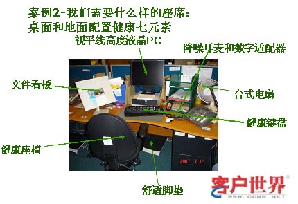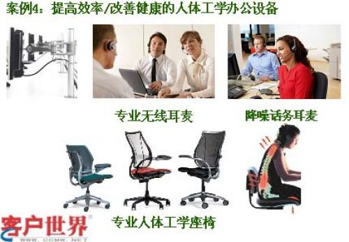 還有一個話題是健康座席怎么去配備,我主張七個元素,這個是在英國學(xué)到的,英國的話務(wù)員他們每個人都干到40歲,他們可以從20歲-40歲還沒有厭倦這個行業(yè)和崗位,他們認(rèn)為這個工作不是天天疲于應(yīng)付,或者說強度非常高而產(chǎn)生很大壓力的工作,他們很熱愛自己的工作,你看他們有很舒服的座椅,還有腳墊,女孩子如果注意保養(yǎng)自己身材的話,要經(jīng)常有機會站起來,保持一種站立狀態(tài)去工作,包括有一些電扇、健康的鼠標(biāo)、鍵盤、降噪耳機,等等,包括視頻顯示液晶屏都可以讓客服代表享受輕松的工作感受,不會因為疲勞而產(chǎn)生厭倦,這種厭倦來的非常晚,當(dāng)一個員工在一個新的崗位工作超過一年以后,在他的厭倦感來臨之前我們已經(jīng)幫他調(diào)整好這種心態(tài)和適應(yīng)力,可能他的厭倦感會一直不來,這樣的話我們就可以很長時間保有一個有經(jīng)驗的優(yōu)秀客服代表,為公司節(jié)省很多成本,這樣的工作是非常舒服的。