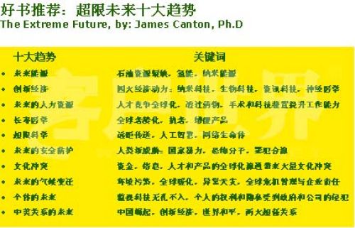 劉總(臺灣遠東集團)很清楚,他是從臺灣過來的,臺灣有很多好書,我個人最喜歡是臺灣的誠品書店,每次去臺北都會去逛那個誠品書店,有很多新書,其中有一本關(guān)于未來十大趨勢的書,比如你會看到一些很新的詞匯,能源,長壽的醫(yī)學(xué),人如何活到120歲,這個在我們的年代可能就已經(jīng)實現(xiàn)了,包括你會看未來的氣候會如何變遷,然后我們未來中美關(guān)系是什么樣子的。這里面的討論對于我們來講,雖然跟我們個人生活關(guān)系并沒有巨大的影響,但是我們會想到一些我們可以比別人做得更快的、一些創(chuàng)新的東西。