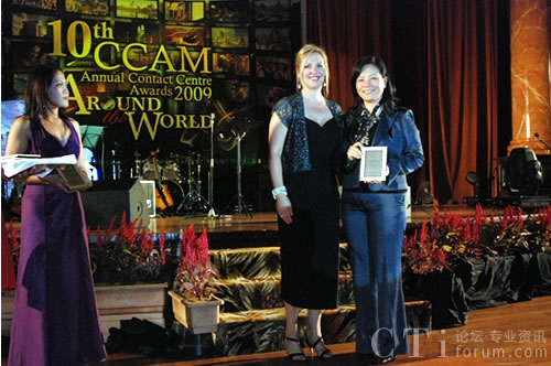 會議期間,飛翱商務(wù)咨詢有限公司市場與客戶服務(wù)部總監(jiān)王淑信代表中國從亞太客服與呼叫中心聯(lián)盟(APCCAL)高級官員的手中接過了象征著2009亞太呼叫中心行業(yè)最高榮譽(yù)的2009亞太最佳呼叫中心的獎牌。