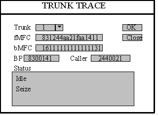從trank下拉式選擇框中選中要跟蹤的中繼號,擊“OK”按鈕,則可以從status框中顯示中繼當(dāng)前的狀態(tài),只顯示新出現(xiàn)的狀態(tài)轉(zhuǎn)變,對過去的狀態(tài)不顯示。