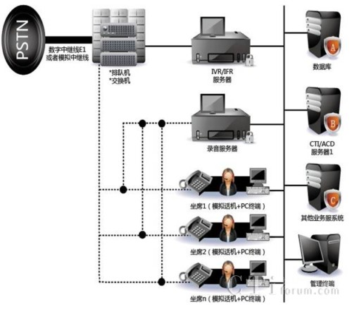 交換機(jī)方案是以電話交換為基礎(chǔ)搭建的呼叫中心,集成了PBX交換機(jī),IVR語(yǔ)音導(dǎo)航,ACD智能排隊(duì),CTI電腦系統(tǒng)管理,錄音與管理。系統(tǒng)處理能力在1000個(gè)坐席以上,系統(tǒng)可能性搞,支持分布式坐席。
