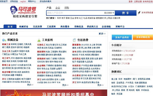 馬可波羅網(wǎng)隸屬北京搜斗士信息技術(shù)有限公司,成立于2006年,是全球最大的精確采購(gòu)搜索引擎。馬可波羅按照格式化標(biāo)準(zhǔn)研發(fā)的多維精準(zhǔn)搜索系統(tǒng),首創(chuàng)電子商務(wù)精確廣告營(yíng)銷模式(B2B競(jìng)價(jià)排名),僅用了不到5年時(shí)間,即在B2B電子商務(wù)精準(zhǔn)采購(gòu)搜索領(lǐng)域做到行業(yè)第一。