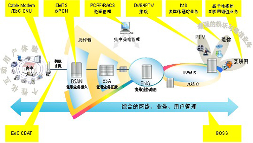 HLN解決方案是針對海量用戶、高帶寬和高并發(fā)流量而設計,適合用大規(guī)模家庭雙向業(yè)務的市場。在該架構下,通過配備支持同軸電纜接入技術的網(wǎng)元設備,提供基于IP的雙向交互、廣播、單播\組播、推送播存的能力,完全滿足廣電各階段業(yè)務發(fā)展需要的同時,通過精細化管道、高帶寬、扁平化等優(yōu)勢,實現(xiàn)網(wǎng)絡效率和效益的提升。