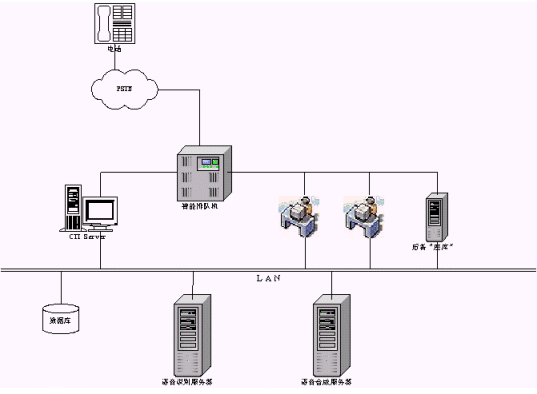 系統(tǒng)采用這樣的結(jié)構(gòu),可以在前期對語音識別應(yīng)用時的一些問題進(jìn)行發(fā)現(xiàn),如系統(tǒng)提示是否準(zhǔn)確、可靠等,既不影響原有系統(tǒng)的正常運(yùn)作,也免去了系統(tǒng)人力不足的后顧之憂,在調(diào)試系統(tǒng)上,也不會涉及到原有系統(tǒng)。在當(dāng)語音識別系統(tǒng)完全可以擔(dān)當(dāng)起座席時,通過對系統(tǒng)座席管理的調(diào)整,當(dāng)有電話接入時,系統(tǒng)先派線到語音識別"座席",由語音識別系統(tǒng)來完成一定的工作,當(dāng)該虛擬座席無法完成任務(wù)時,此時則將電話轉(zhuǎn)接至人工座席,由人工座席來完成后續(xù)工作,從而達(dá)到降低人工勞動強(qiáng)度或減員增效的目的,系統(tǒng)也能順暢的得到應(yīng)用。比如人們在應(yīng)用語音識別技術(shù)時,經(jīng)常很關(guān)心的一個問題是識別率的問題,非常擔(dān)心由于識別率不足而影響了系統(tǒng)。如果采取這種后備的模式,在前期可以進(jìn)行一些初步的嘗試,實(shí)際運(yùn)行中看看語音識別技術(shù)到底如何,到底能否滿足系統(tǒng)運(yùn)行的需求,通過一段時間的實(shí)際操作,在合適的時候就可以讓語音識別來擔(dān)當(dāng)重任,完成過渡。后備模式為系統(tǒng)的成功應(yīng)用提供了一個相當(dāng)好的緩沖期。這樣的方法,這樣的思路,這樣的模式,不失為一個大的呼叫中心應(yīng)用語音識別技術(shù)的一個比較理想的嘗試之路。