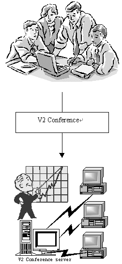 I P視頻會(huì)議,是一種利用普通的PC機(jī)加上簡(jiǎn)單的視頻攝像頭和耳機(jī)麥克風(fēng),通過Internet或者是局域網(wǎng)進(jìn)行傳輸,以低廉的成本傳送數(shù)據(jù)、視頻和音頻信號(hào)的新型會(huì)議方式。V2公司的視頻會(huì)議產(chǎn)品V2 Conference 就采用了這種技術(shù)先進(jìn)而且經(jīng)濟(jì)合算的方式,與傳統(tǒng)的需要專用的服務(wù)器和硬件支持的視頻會(huì)議相比,該系統(tǒng)可以使您無需進(jìn)行成本高昂的投入,就實(shí)現(xiàn)高質(zhì)量、高可靠性的音視頻通訊。同時(shí),為了方便您的管理,V2 Conference提供了會(huì)議管理的功能,使您足不出戶,就可以掌控全局。